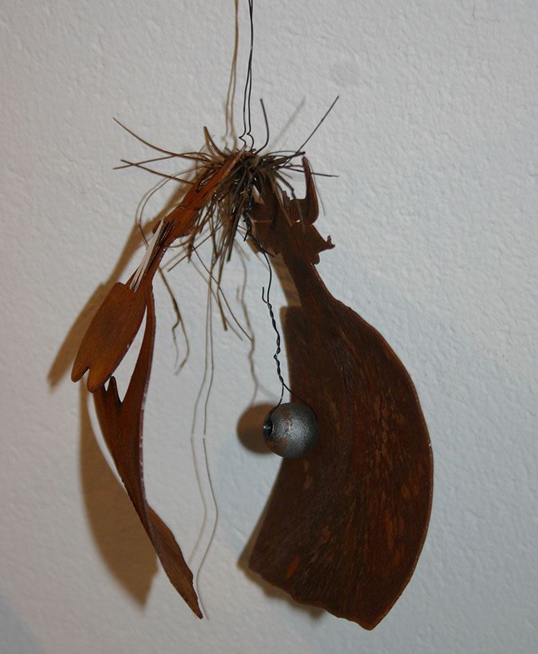 Metall rost, mit emaillierter Farbauflage anthrazit, Augen weiss