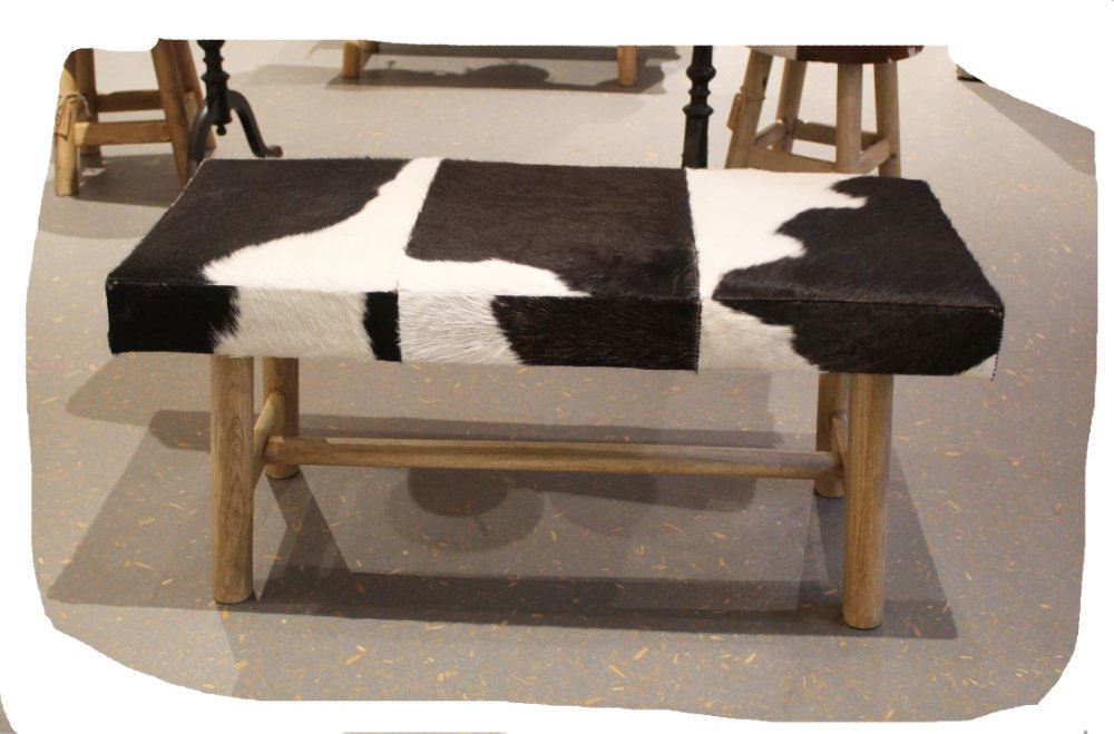 aus Kuh-/Stierenfell, mit Holzfüssen/-Beinen