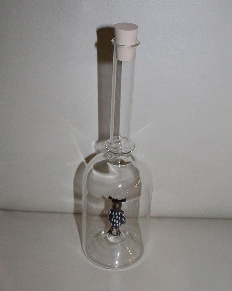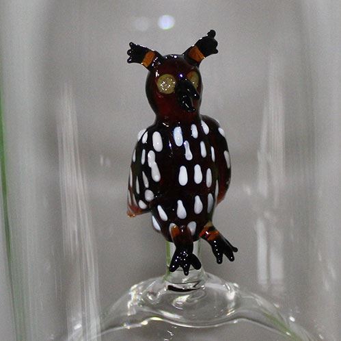 mit Glassujet Eule braun in der Flasche