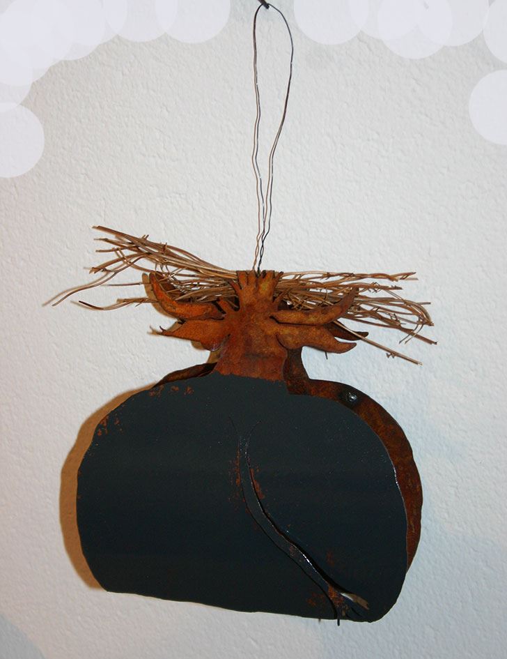 Metall rost, mit emaillierter Farbauflage anthrazit, Augen weiss