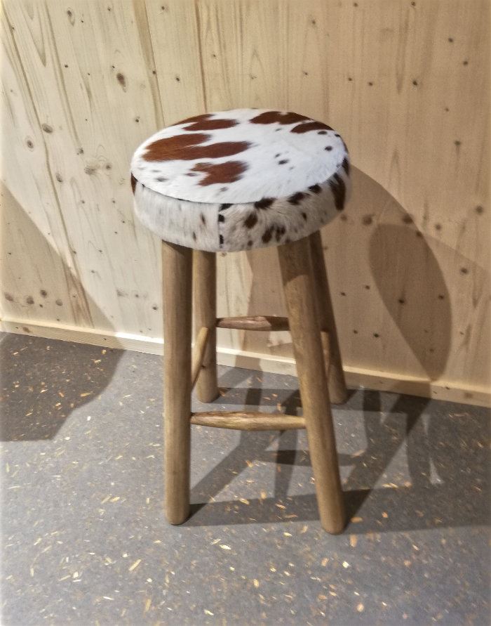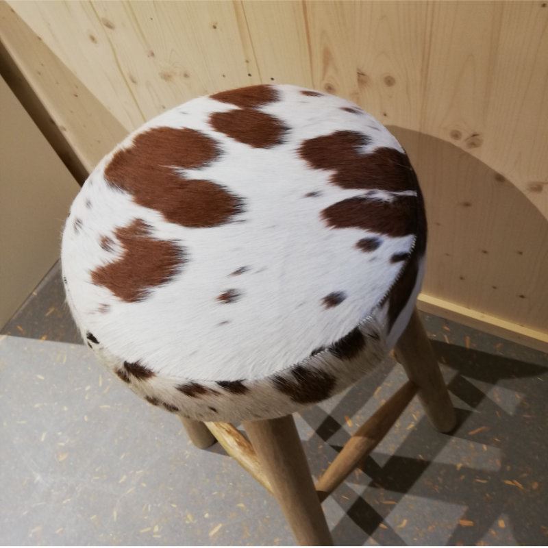 toller BAR-Hocker mit Echtfell und Holzbeinen