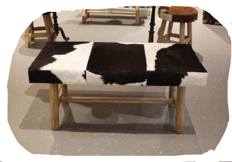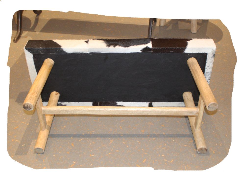 aus Kuh-/Stierenfell, mit Holzfüssen/-Beinen