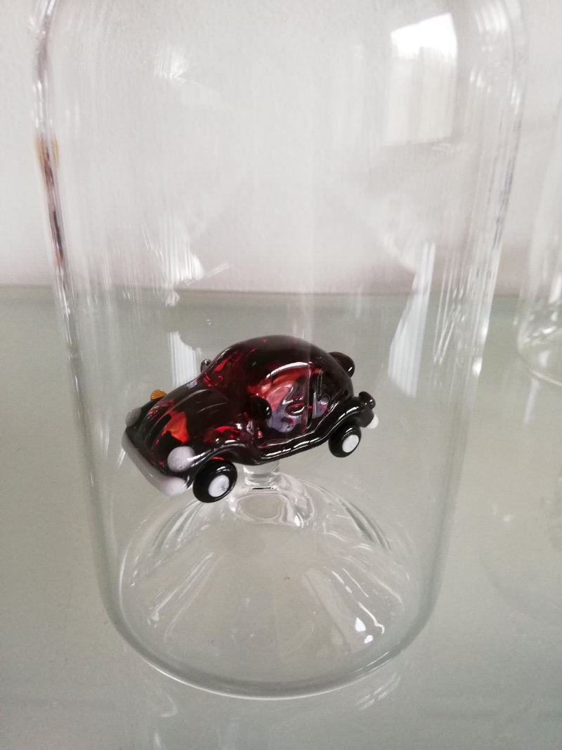 mit Glassujet VW-Käfer rot in der Flasche