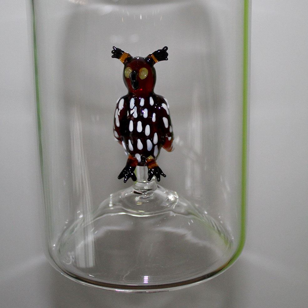 mit Glassujet Eule braun in der Flasche