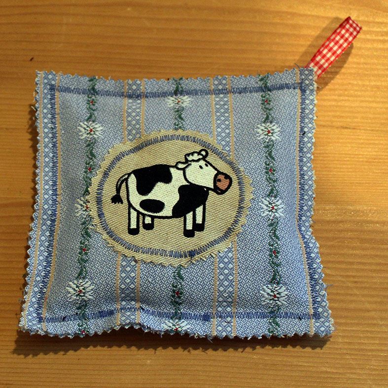 Kuh-Dekor appliziert (verschiedene Kuhformen/Kuhdekor wie schwarze Lavendelkissen)