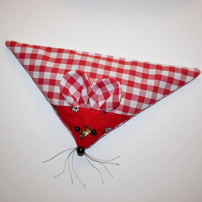mit baunem Köpfchen und Ohren, Körper rot Karré-Stoff