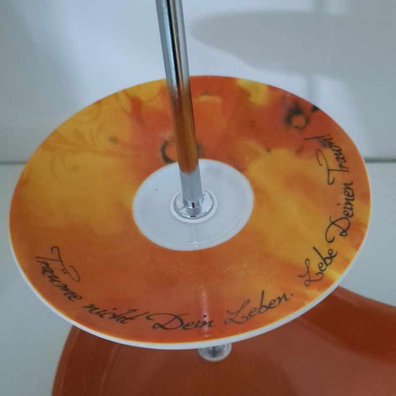 Die Etagère ist 3-teilig - kann auch umgebaut werden (nur Teller oder Tasse mit Schale)